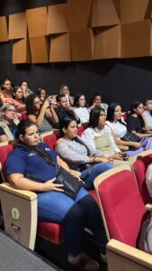 A programação também contou com a participação da Major da Polícia Militar Gabrielle Narjara Nazário de Barros Lara Cruz, que abordou o tema “Atuação da Polícia Militar no combate à violência doméstica em Cuiabá”, destacando as estratégias institucionais adotadas no enfrentamento à violência contra a mulher e a importância das políticas de prevenção e proteção às vítimas.