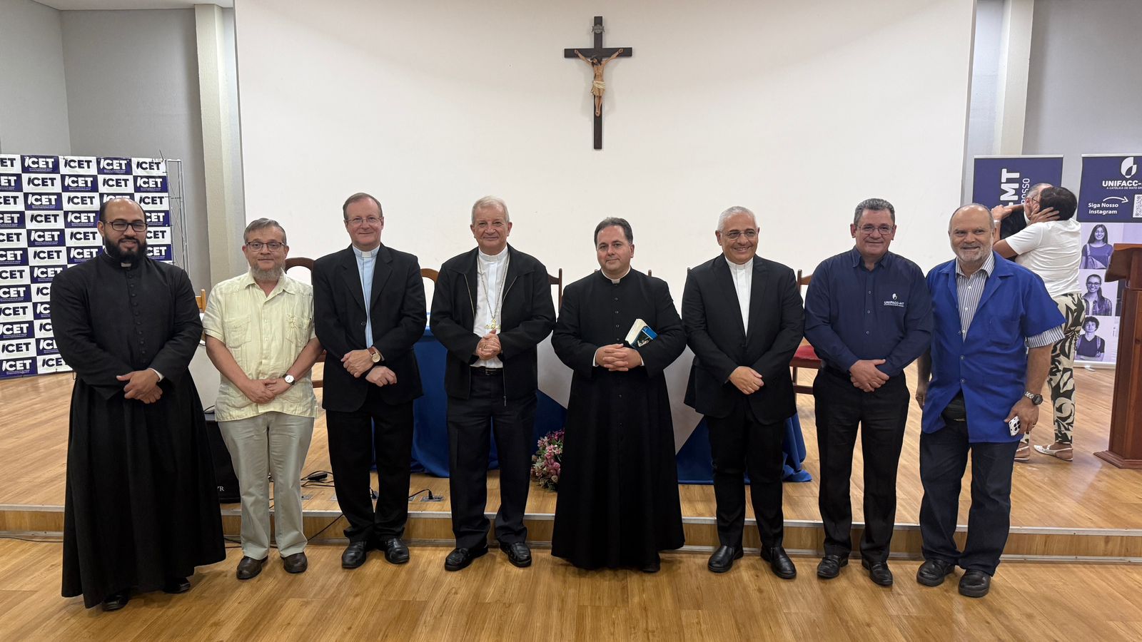 O encontro contou com a presença de Dom Mário Antônio, arcebispo de Cuiabá; do Padre Edson Sestari, diretor-geral da UNIFACC; do Padre Evandro Stefanello, presidente do Tribunal Eclesiástico; do Padre Luilson Sávio, chanceler da Arquidiocese de Cuiabá; e do Padre Wellington Oliveira, responsável nacional pelo Movimento Sacerdotal Mariano e orientador espiritual, além de outros representantes da Diocese.